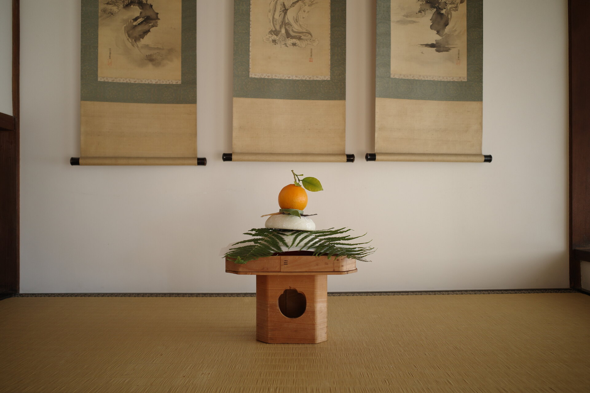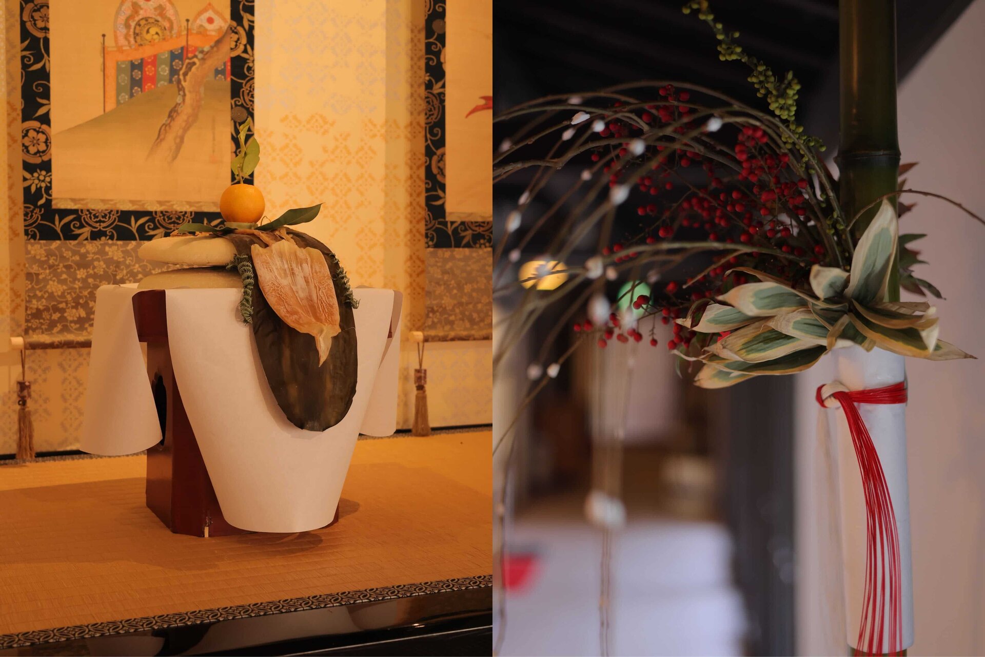 御花には今なお生きる歴史が絶えることなく紡がれています。お正月は「年神様(としがみさま)」と言われる豊作や健康をもたらす神様をお迎えする大切な節目。そのため行事や様々な習わしが生まれました。御花の館内を歩くと、様々な場所でお正月のしつらえをお楽しみいただけます。