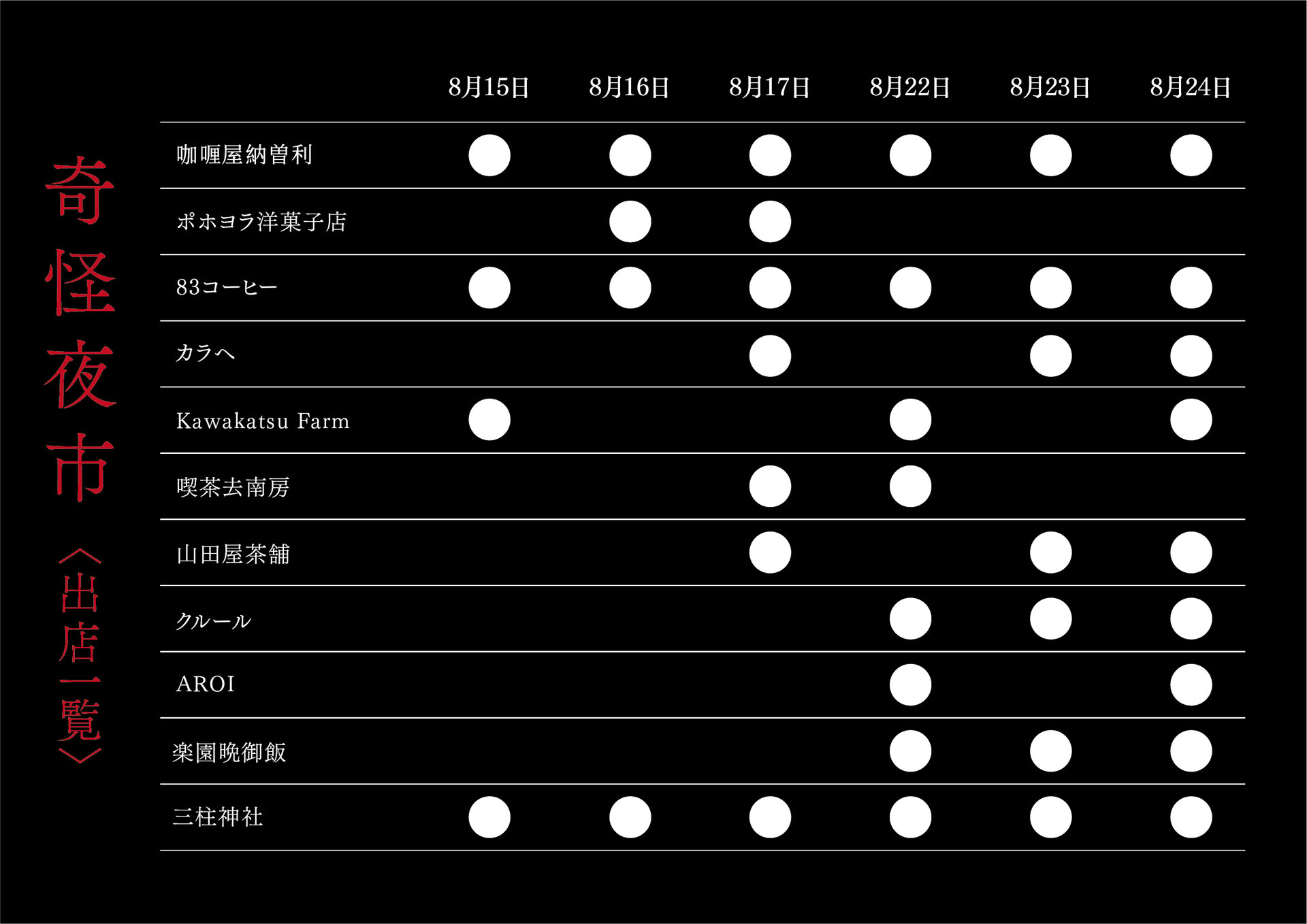 奇怪夜行の夜、柳川に現れるのは、選び抜かれた名店が集う「奇怪夜市」。