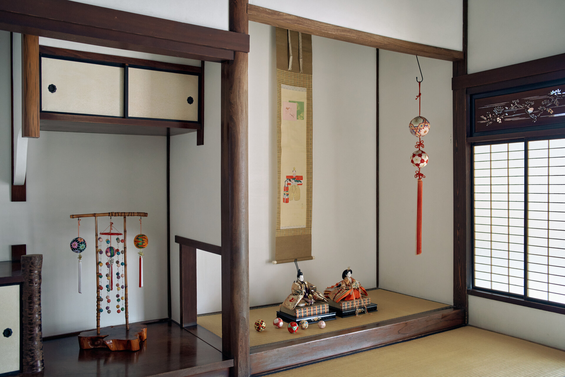 ・床の間:桃の節句仕様の設え(お選びいただく料亭の個室によってしつらえの形は異なります。料亭の小部屋はこちらから)