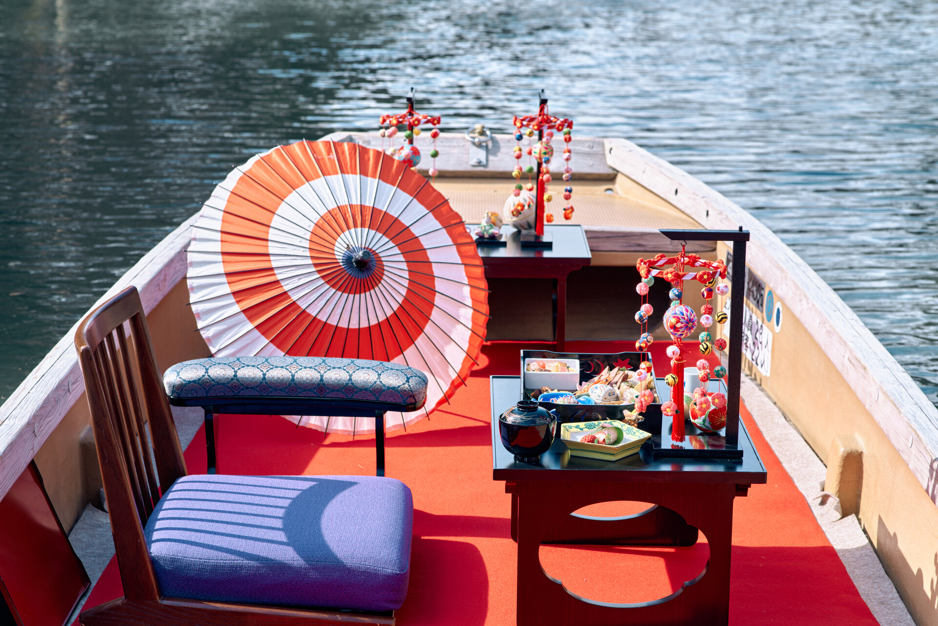 ・桃の節句仕様にしつらえた貸切舟
